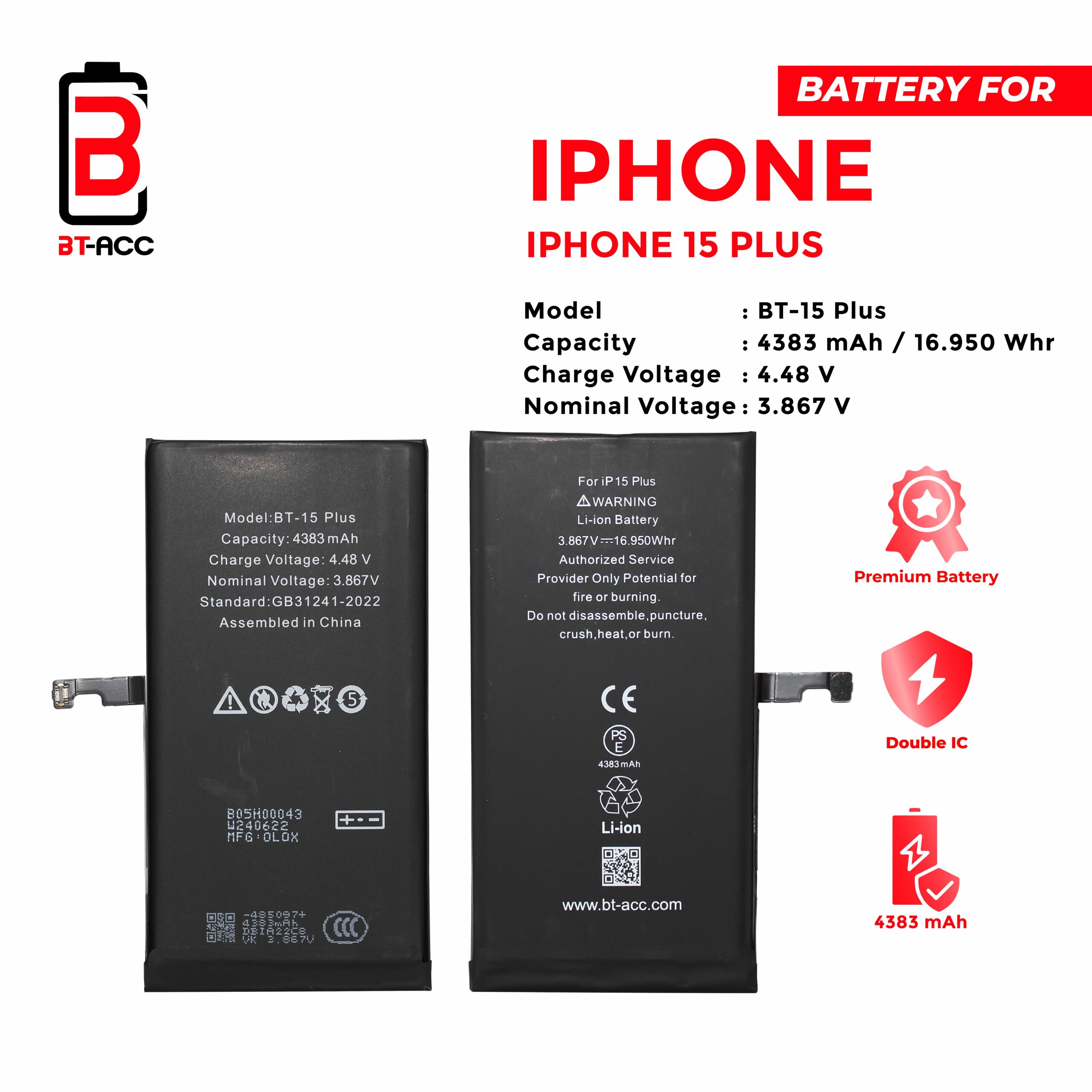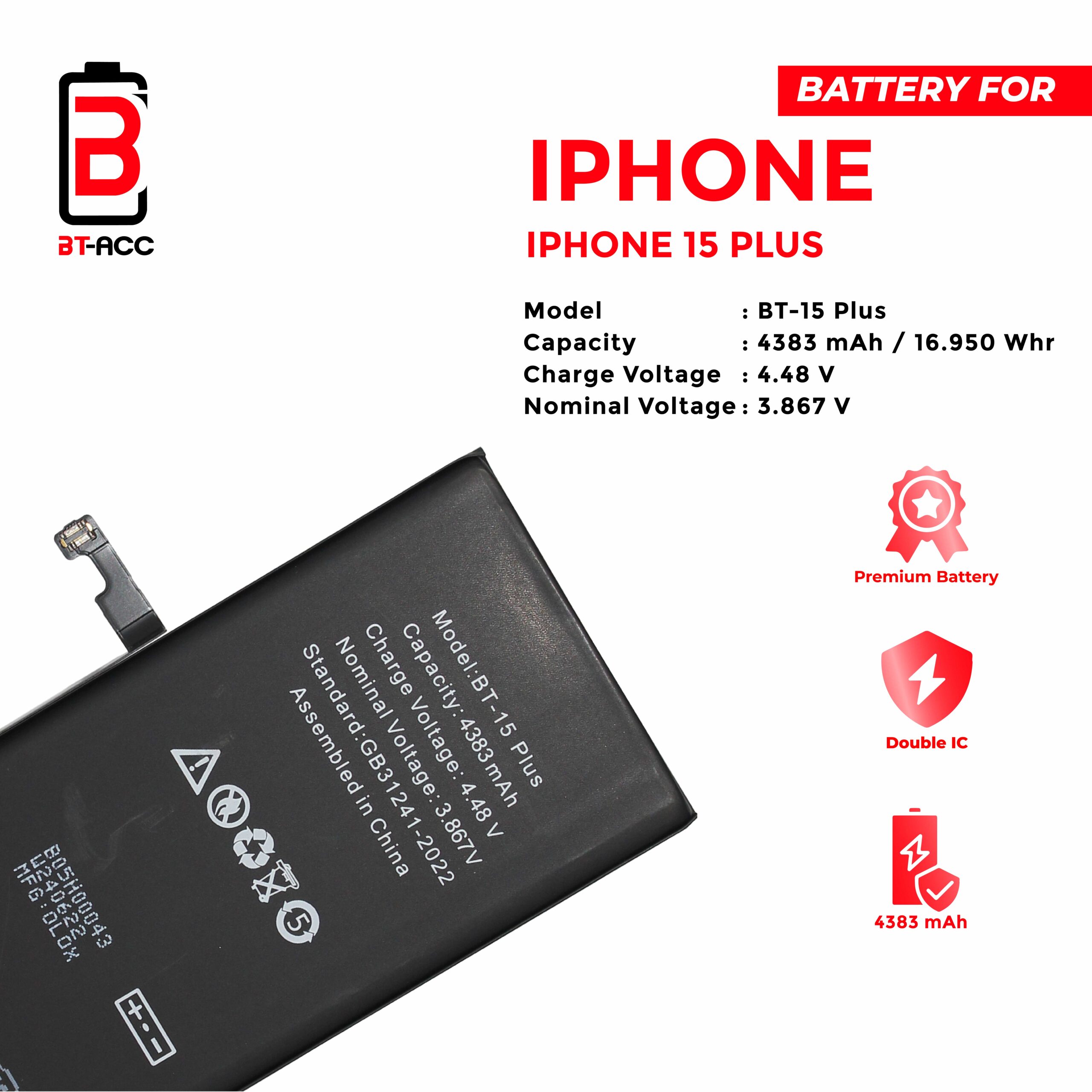 BT-ACC Baterai iPhone 15 Plus / A3039 (4383 mAh)