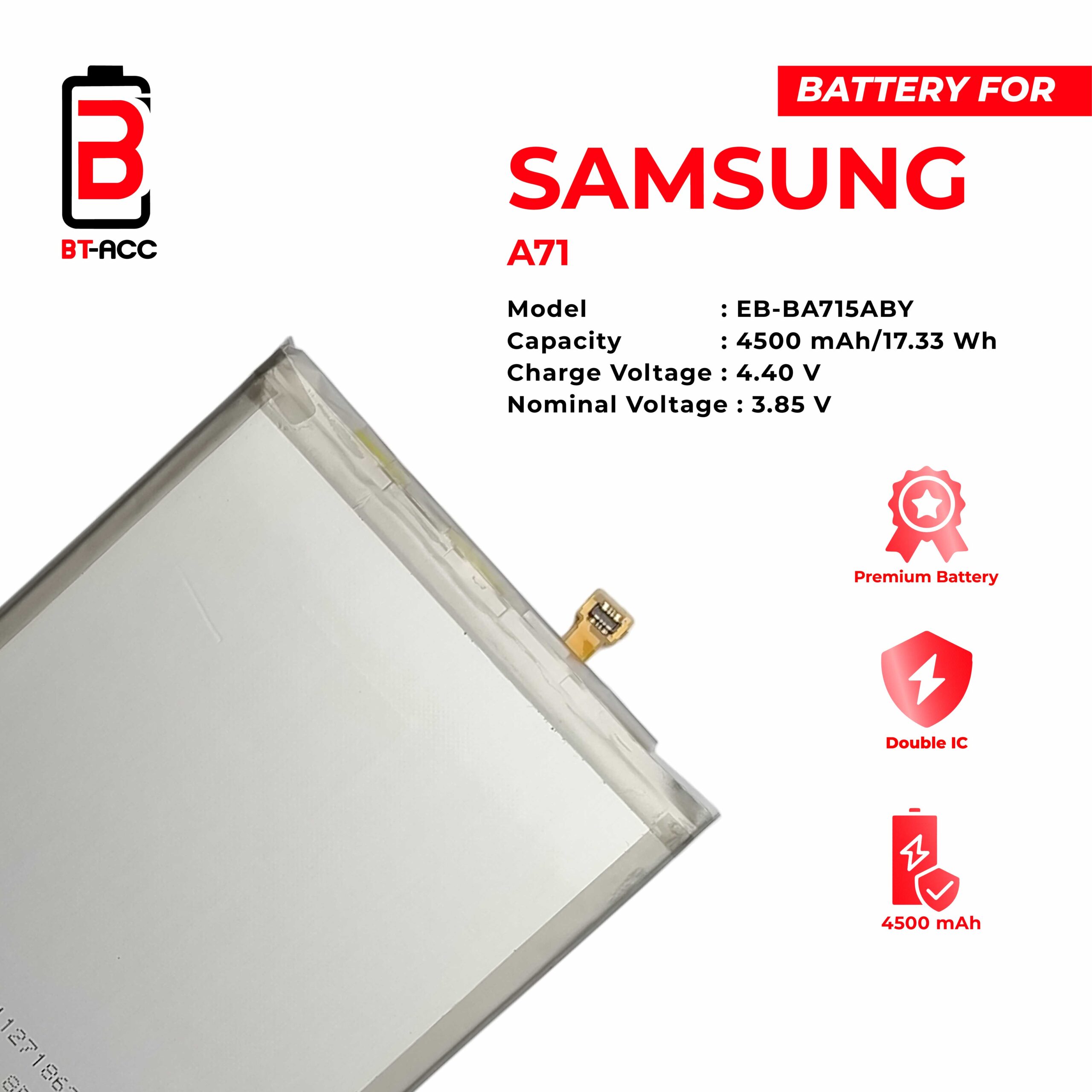 Get a longer battery life for your Samsung Galaxy A71 / EB-BA715ABY phone with BT-ACC as a replacement. This battery made of high quality materials has a durability of up to 4500 mAh and is equipped with Double IC Power so that it makes it more stable when used.