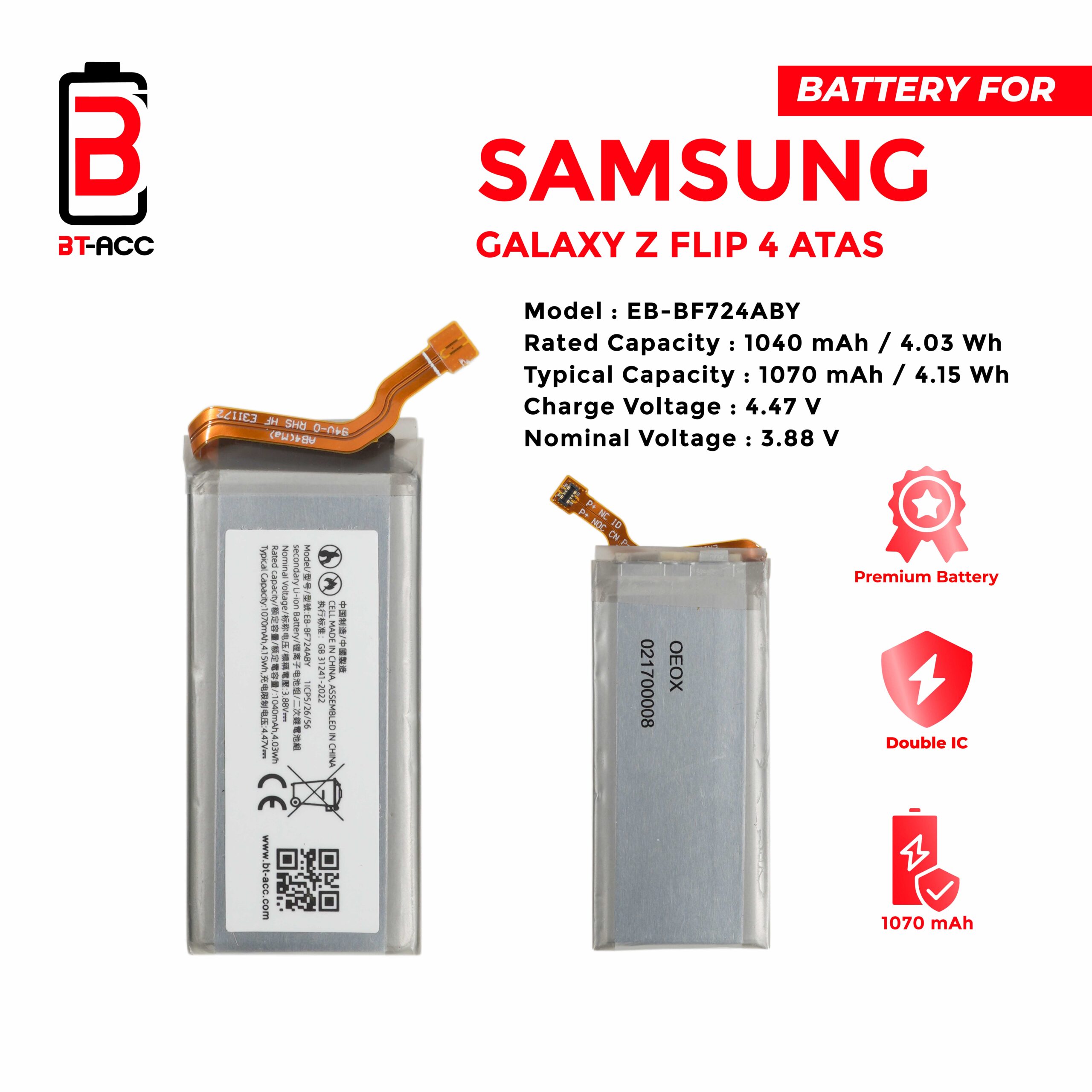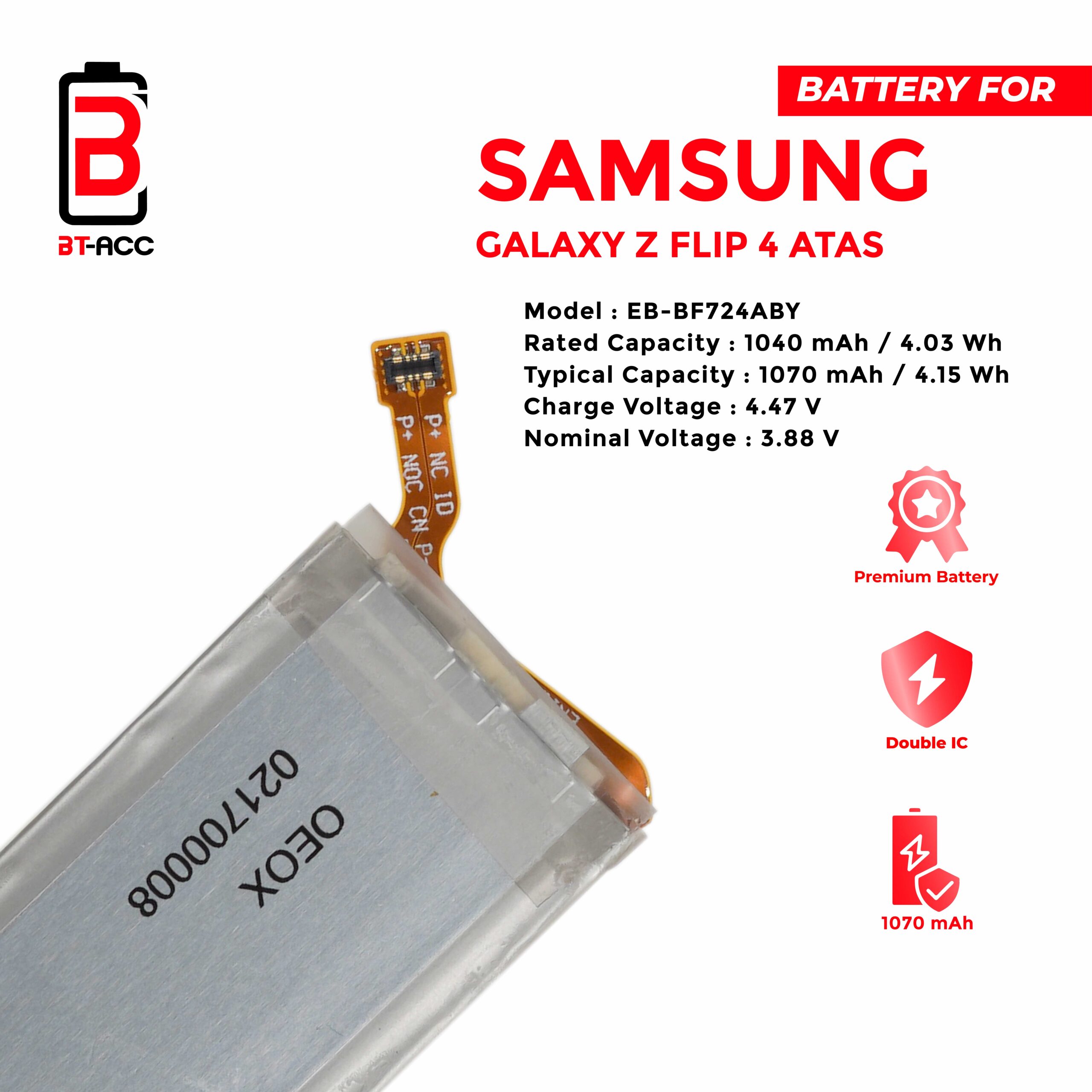 Optimize your Samsung Z Flip 4 usage experience with the Original New quality BT-ACC Battery.