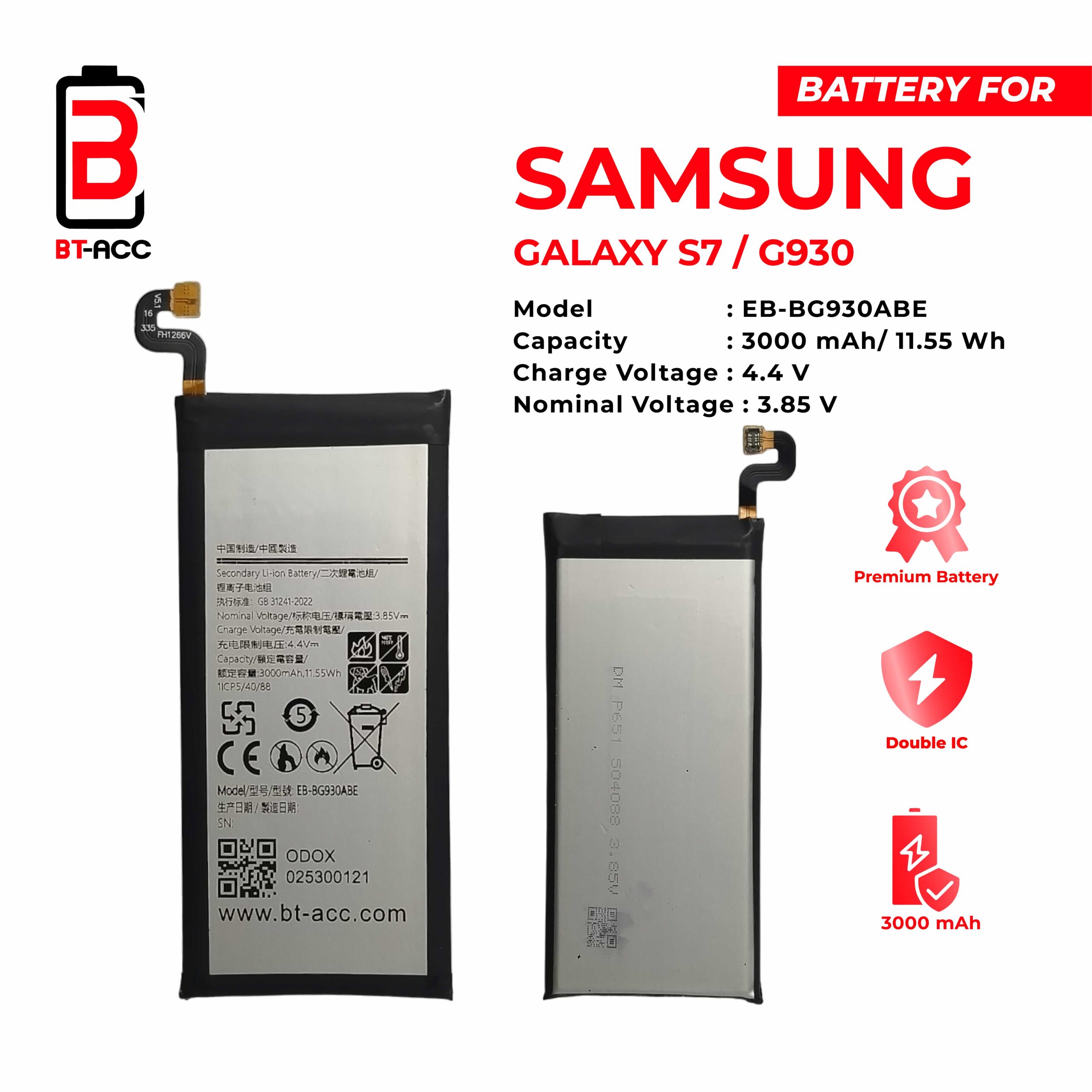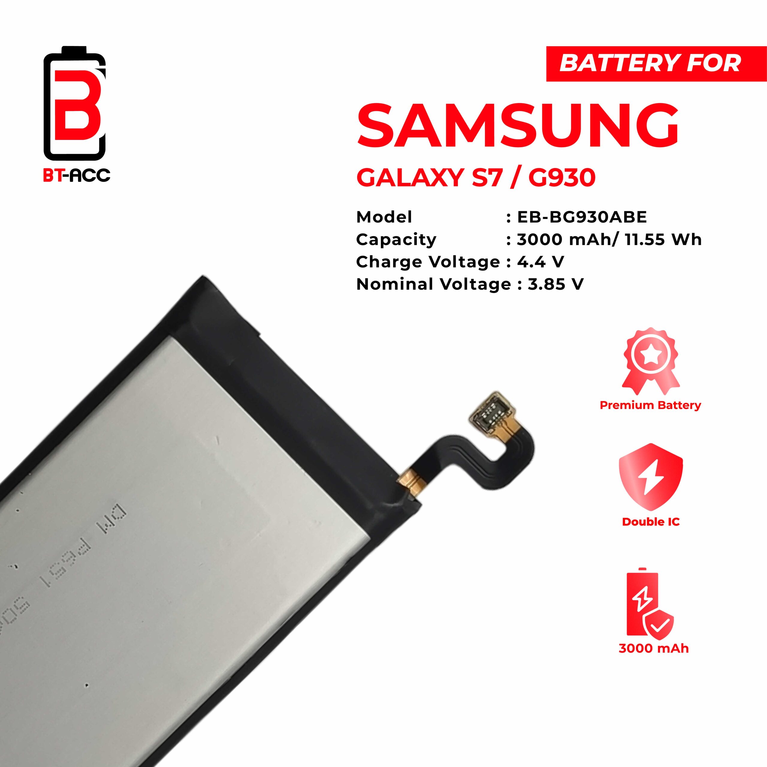 Get more long-lasting battery power for your Samsung Galaxy S7 / G930 phone with BT-ACC as a replacement. This battery made of high-quality materials has a durability of up to 4300 mAh and is equipped with Double IC Power, making it more stable when used.