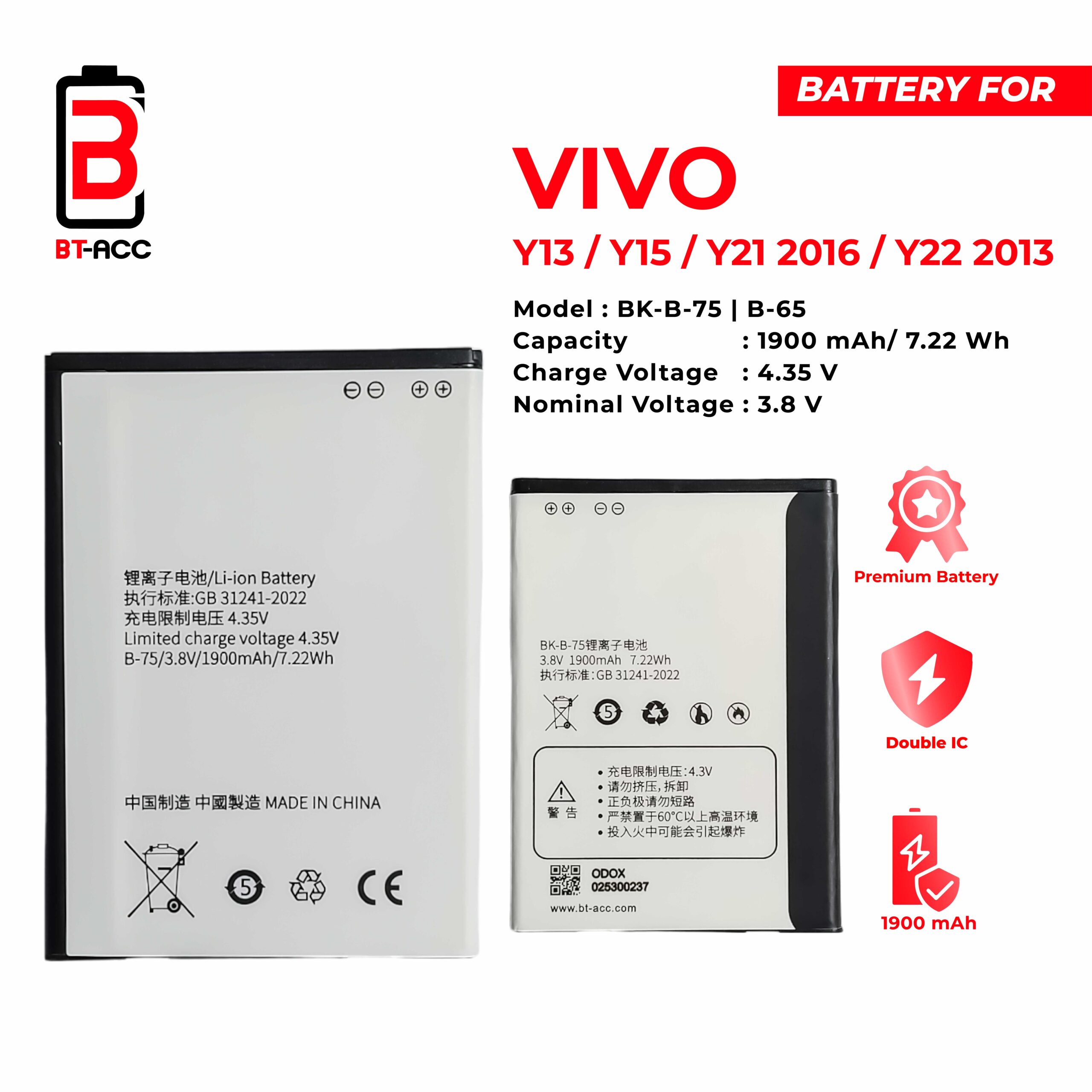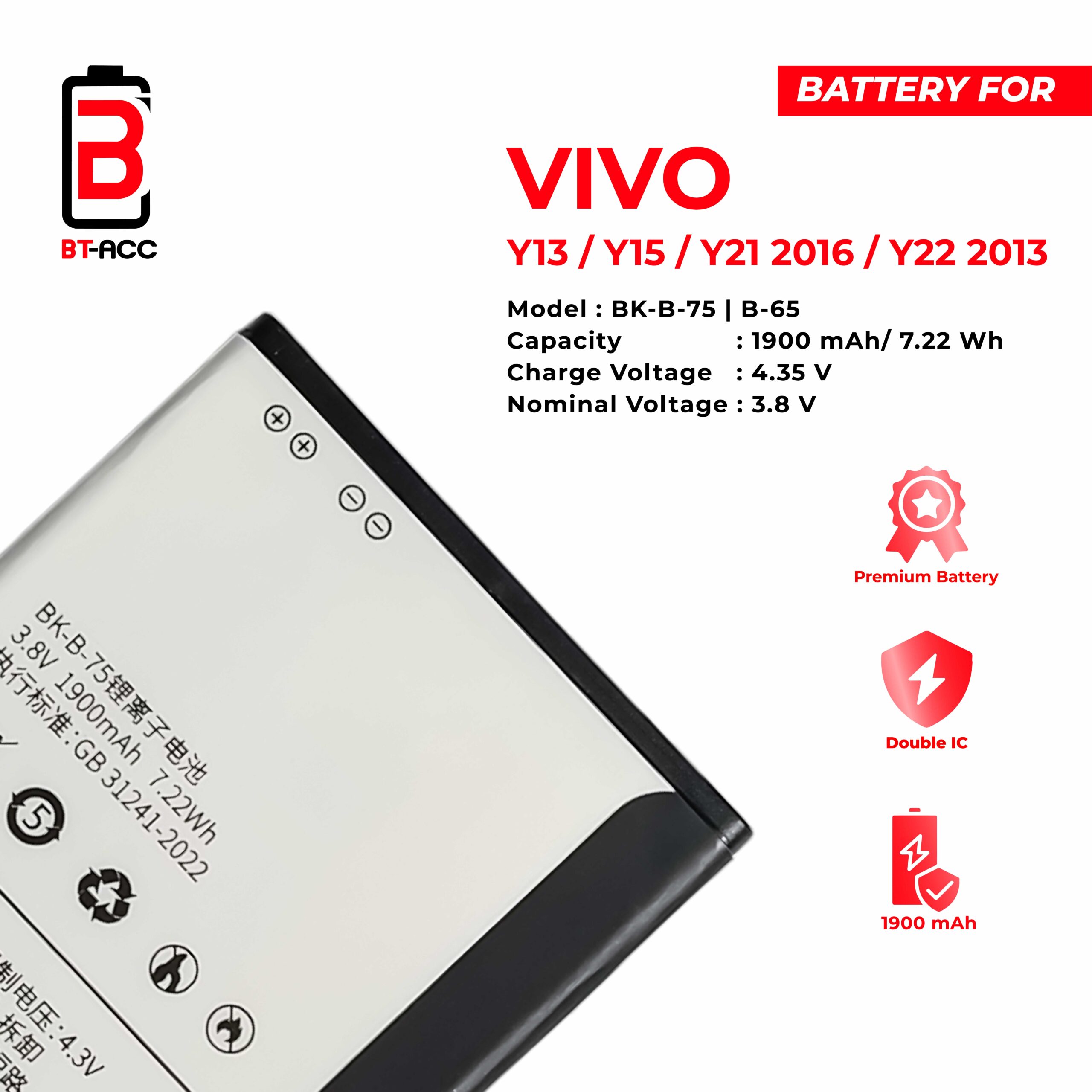BT-ACC Baterai Vivo Y15 / Y21 2016 / Y22 2013 / Y13 / BK-B-75 / BK-B-65