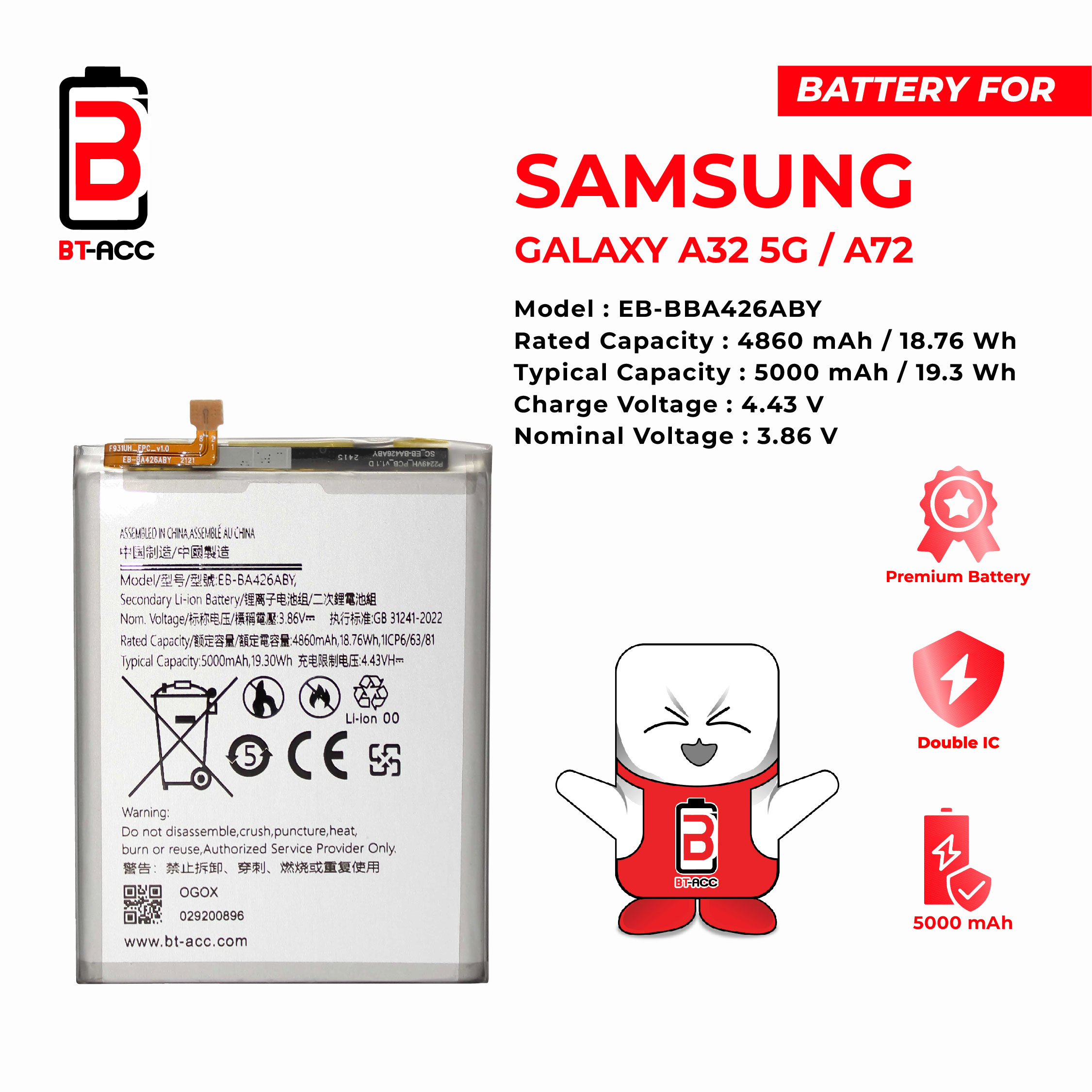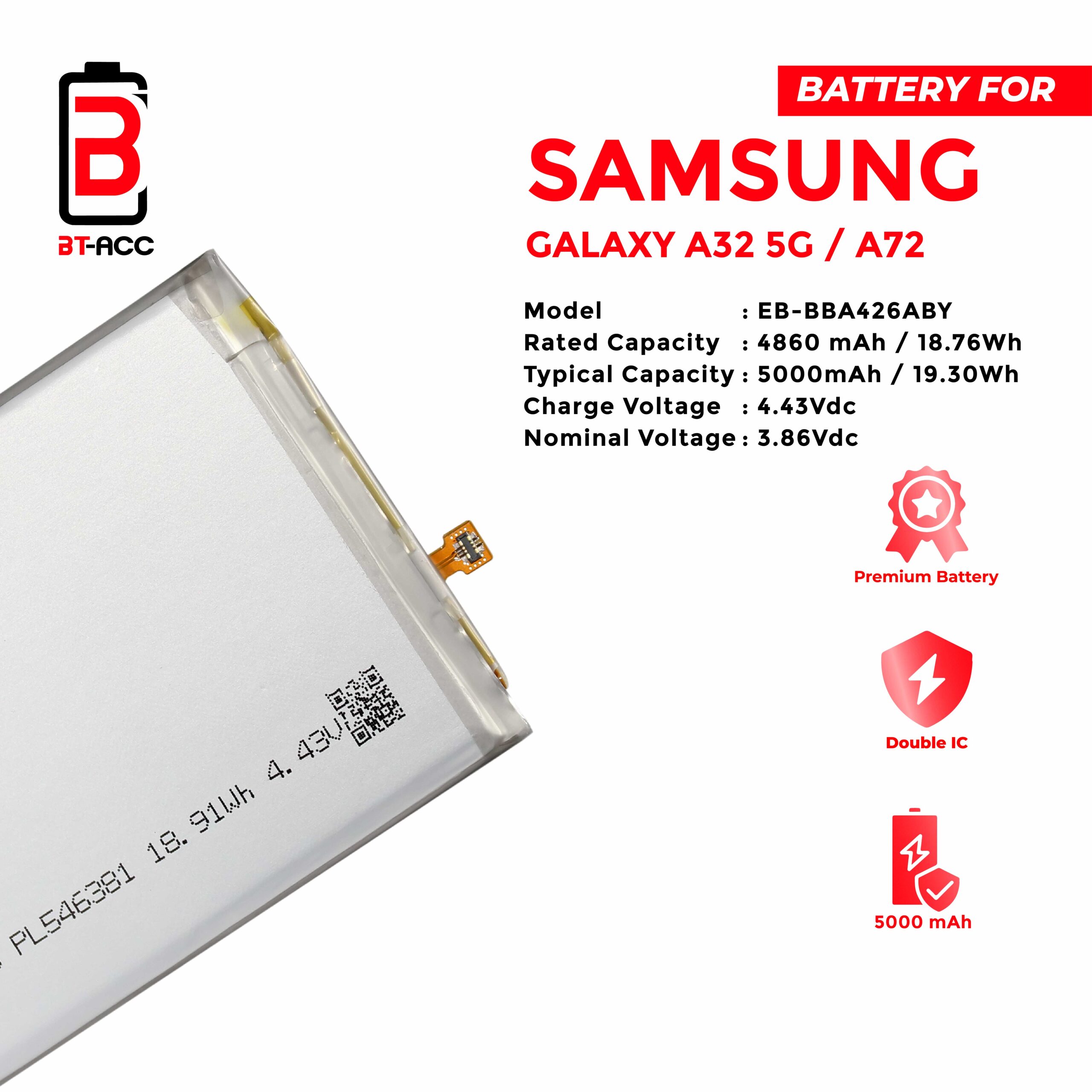 Get longer battery life for your Samsung A32 5G phone with BT-ACC.
