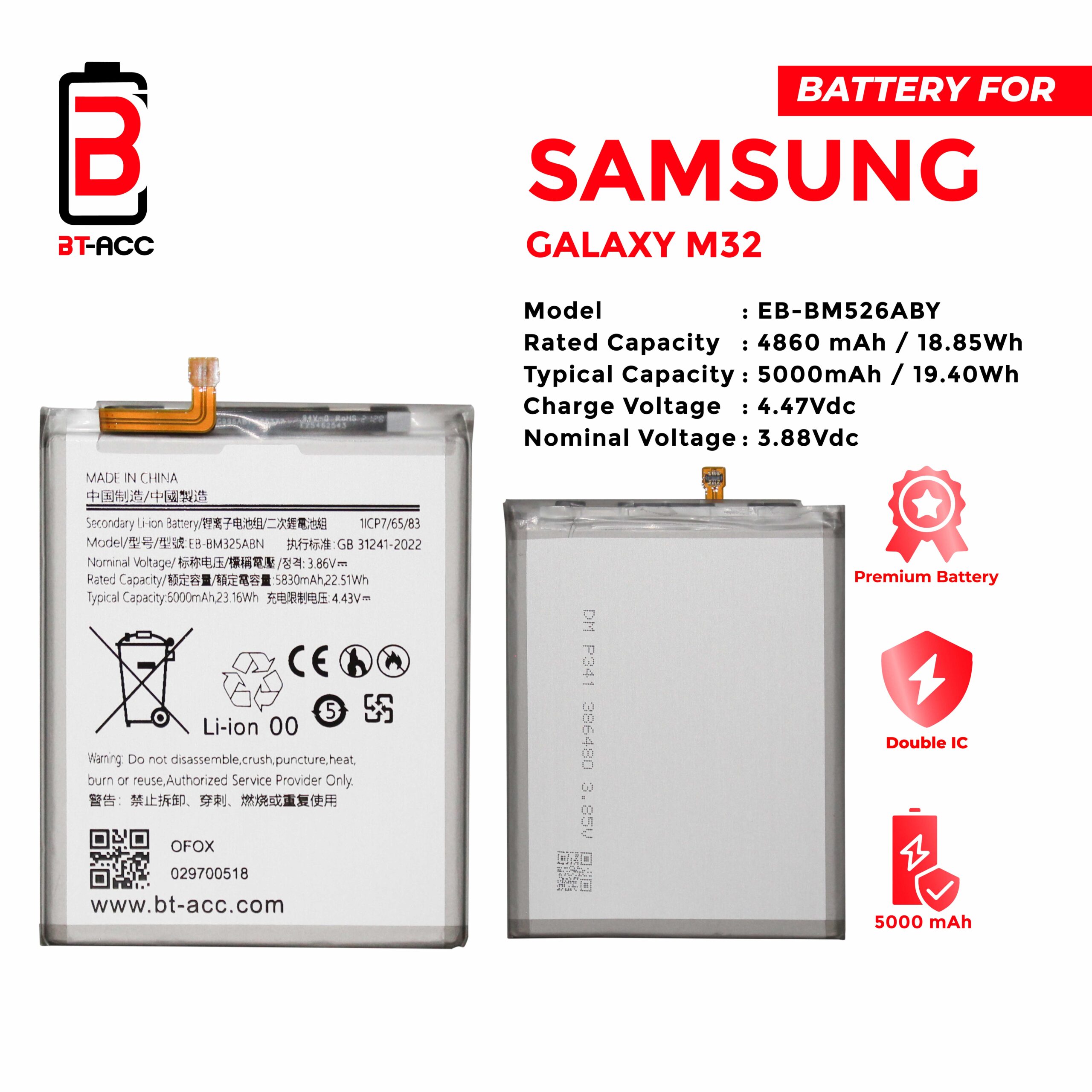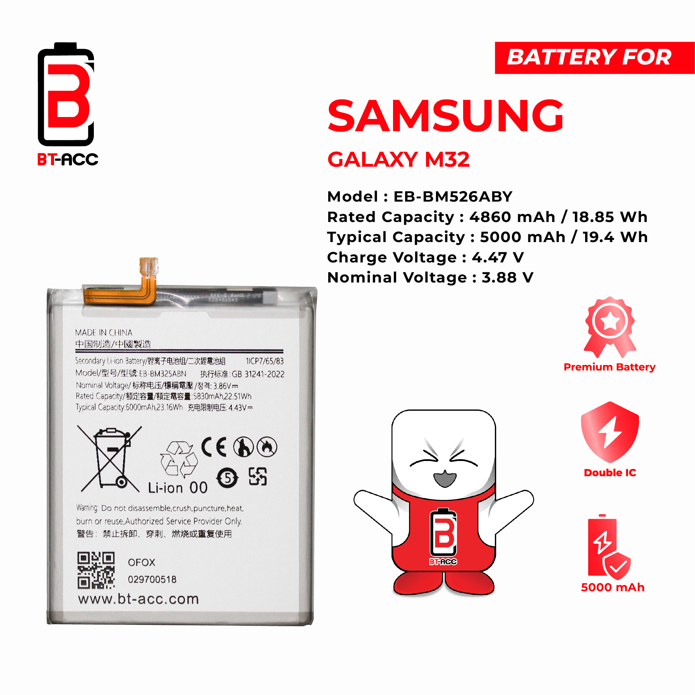 Get longer-lasting battery power for your Samsung M32/EB-BM325ABN phone with BT-ACC.