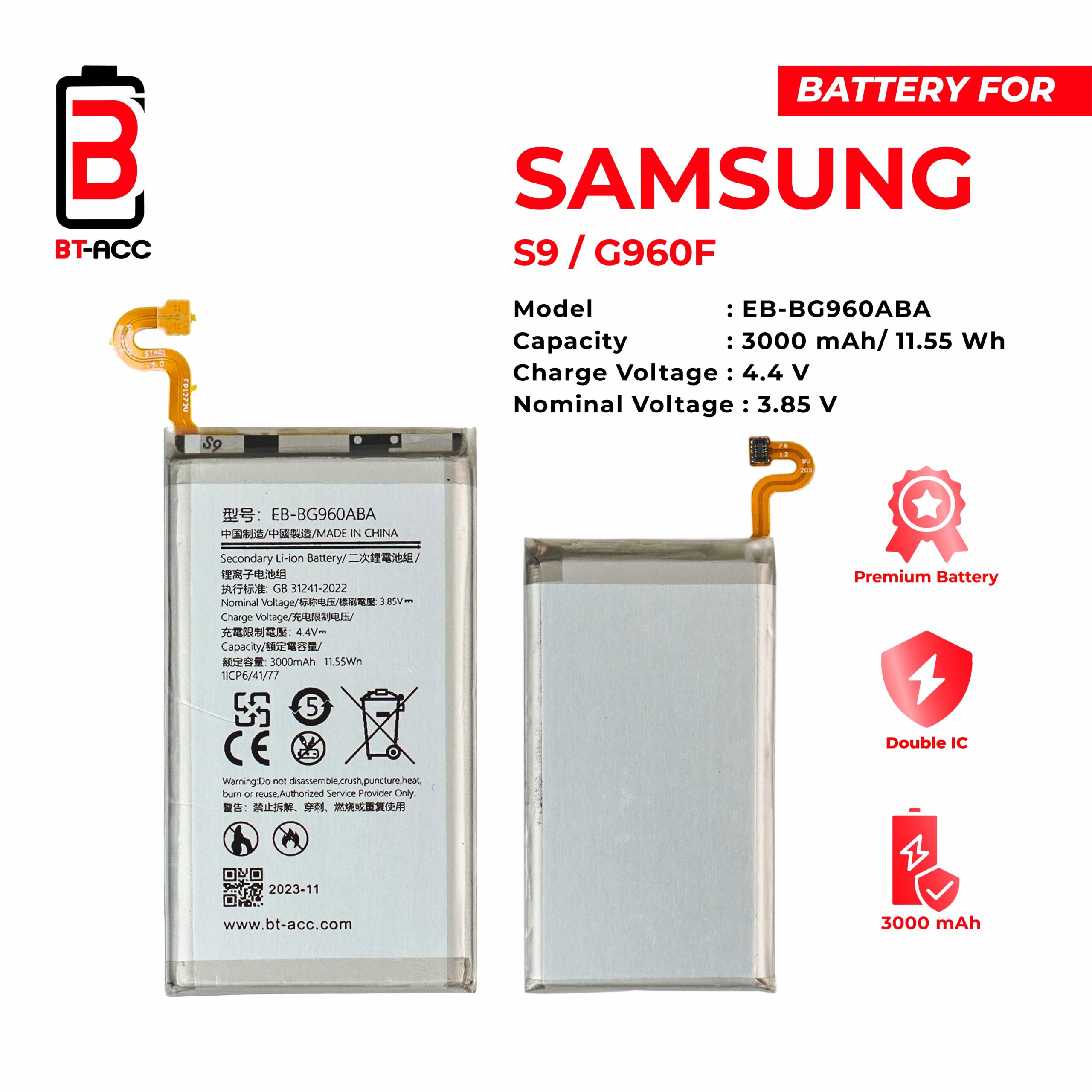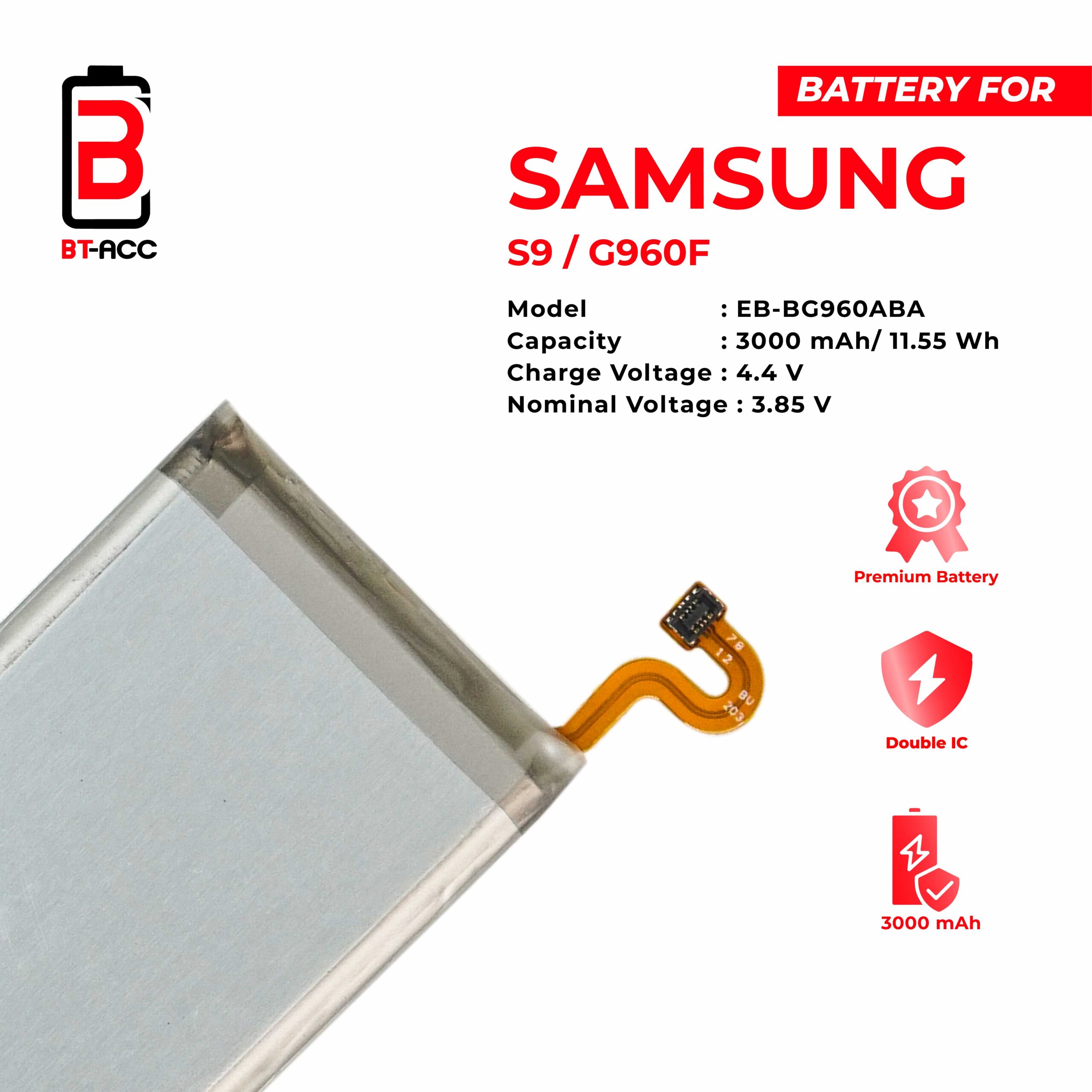 Get longer lasting battery power for your Samsung S9/G960 phone with BT-ACC.