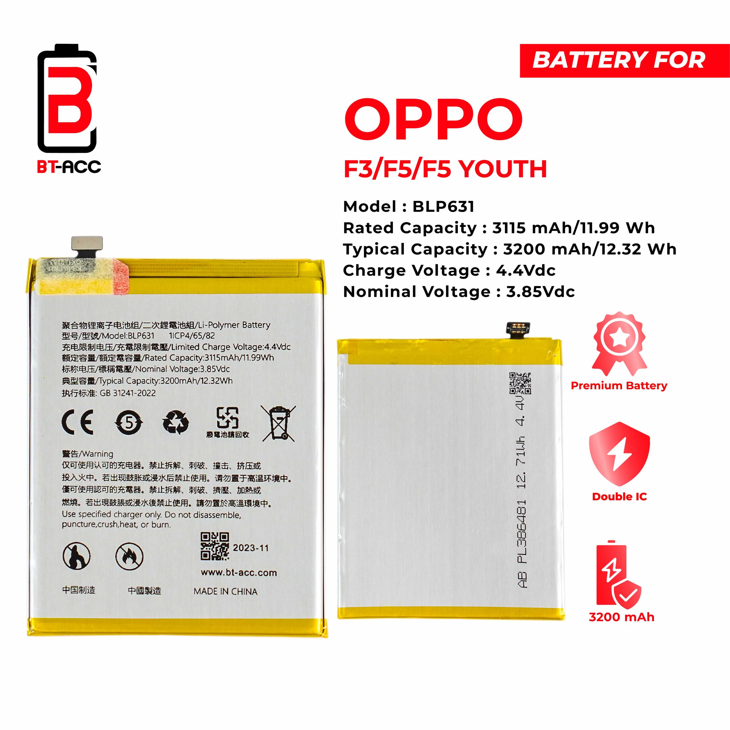 BT-ACC Baterai Oppo F3 / F5 / F5 Youth / BLP631