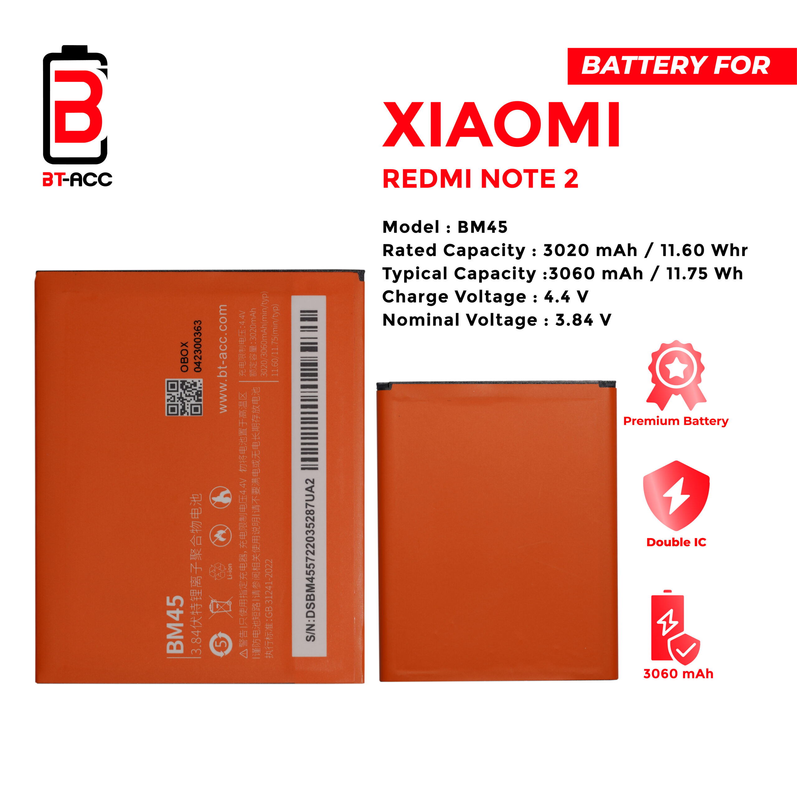 BT-ACC Baterai Xiaomi Redmi Note 2 – BM45